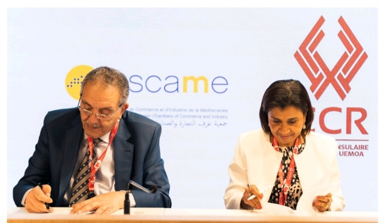 على هامش المؤتمر والمعرض الدولى للنقل واللوجستيات في برشلونة بإسبانيا، وقع احمد الوكيل رئيس اتحاد الغرف المصرية واتحاد غرف البحر الأبيض اتفاقية تعاون أمس مع السيدة هيلينا ماريا خوسيه نوسوليني إمبالو، رئيس والغرفة الإقليمية للاتحاد الاقتصادي والنقدي لدول غرب إفريقيا (CCR-UEMOA) بحضور رؤساء اتحادات الغرف من ال 8 دول الأعضاء وهم بنين، وبوركينا فاسو، وكوت ديفوار، وغينيا بيساو. ومالي والنيجر والسنغال وتوغو وقيادات اتحاد غرف البحر الأبيض ود. علاء عز أمين عام اتحاد الغرف المصرية والافريقية ، ود. ياسر المناويشى، امين صندوق غرفة الإسكندرية.