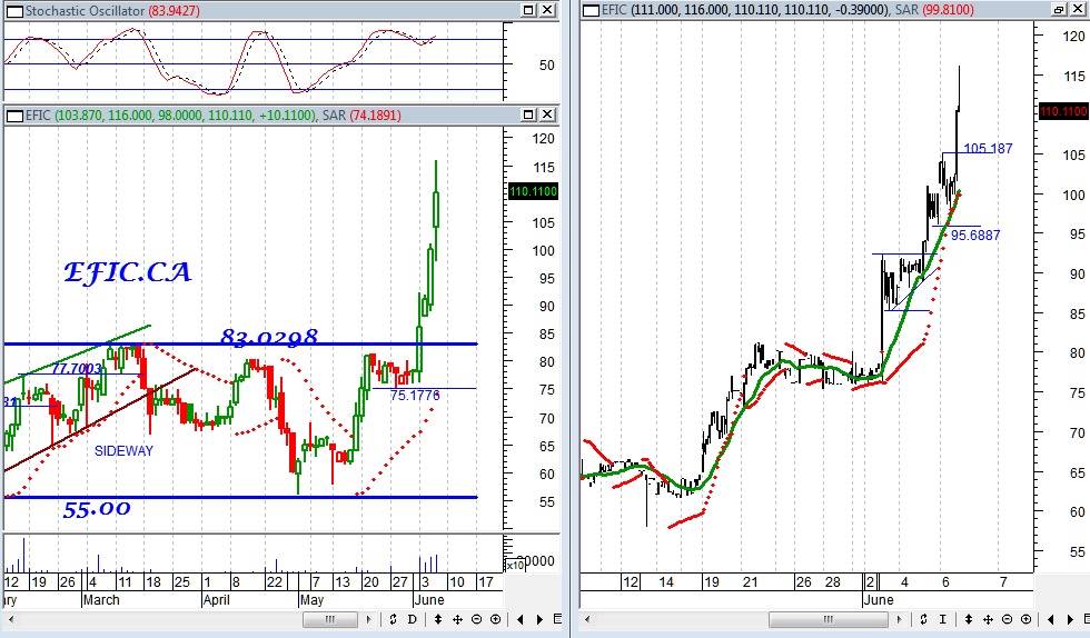 بالنظر إلى الرسم البياني لسهم الماليه والصناعيه نجد أن القوة الشرائية ما زالت مسيطرة على حرّكة السهم بعد استقرارها اعلي مستويات 83.00 مما أدى إلى تحرك السهم على المدى قصير الأجل في اتجاه صاعد ليكون مستهدف السهم على المدى قصير الأجل 120 ومستهدف السهم علي المدى متوسط الأجل 150