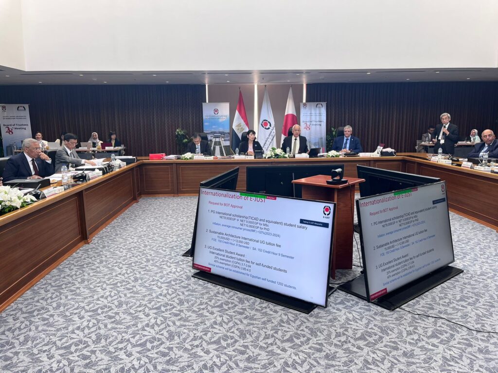 بحضور السيدة ايموتو ساتشيكو نائب رئيس هيئة التعاون الدولي الياباني (جايكا) الاول في دورته الثامنة والعشرين بمقر الجامعة بمدينة برج العرب الجديدة بحضور أ.د.عمرو عدلى رئيس الجامعة والسفير اليابانى أوكا هيروشي، وأ.د. شوجى هاشيموتو نائب رئيس الجامعة لشئون العلاقات الإقليمية والدولية، وأ.د. سامح ندا نائب رئيس الجامعة للتعليم والشئون الأكاديمية، وأ.د. توشيو فوكودا نائب رئيس الجامعة للبحث العلمي، وأعضاء مجلس الأمناء من الجانبين المصري والياباني وعمداء الكليات والمراكز بالجامعة. وأ.د. منى هجرس أمين مساعد المجلس الأعلى للجامعات والمهندس واتنابي ماسامي – مساعد وزير- مدير الشؤن الدولية ، وأ.د. شوجي شيميتزو – نائب رئيس جامعة كيوشو ، وأ.د. نوبيهيرو هاياشي. نائب رئيس معهد طوكيو ، الأستاذ وليد الحداد – نائب رئيس القطاع الأسيوي- وزارة التعاون الدولي، السفير عمر سليم- مساعد الوزير للشئون الاجنبية والثقافية – وزارة الخارجية، وأ.د. سعيد علام نائب رئيس جامعة الإسكندرية لخدمة المجتمع وتطوير البيئة وأ.د. أحمد الجوهري – رئيس الجامعة اليابانية للعلوم والتكنولوجيا الأسبق ، وأ.د. أحمد زايد – مدير مكتبة الإسكندرية، و أ.د. ولاء شتا الرئبس التنفيذي لهيئة تمويل العلوم والتكنولوجيا والابتكار والمهندس محمد عبد الجيد العربي – رئيس العمليات بمجموعة العربي الصناعية