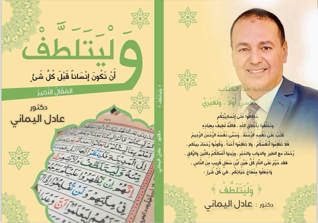 كتابٌ جديدٌ ، للإعلامي الدكتور عادل اليماني ، يتناولُ قُطُوفٌاً مِنْ قيمِ الجَمَالِ والكَمَالِ ، في رحلةِ إبحارٍ مع اللهِ وَرَسُولِه ( ص ) وصَحْبِه الأَطْهارِ الأخْيارِ ، وقِرَاءةً في النَفْسِ والحَياةِ والأخْلاقِ..