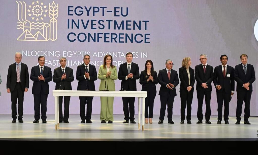 على هامش مؤتمر الاستثمار المصري – الأوروبي المشترك المنعقد بالقاهرة خلال يومي 29 و30 يونيو الجاري، شهد الدكتور مصطفى مدبولي، رئيس مجلس الوزراء، مراسم توقيع اتفاقية مشروع لإنتاج الأمونيا الخضراء بمدينة دمياط، وذلك بين الشركة المصرية القابضة للبتروكيماويات، وشركة مصر لإنتاج الأسمدة “موبكو”، وشركة سكاتك النرويجية، وشركة يارا النرويجية، وذلك بحضور الدكتور / محمد شاكر المرقبي، وزير الكهرباء والطاقة المتجددة، والمهندس / طارق الملا، وزير البترول والثروة المعدنية، والدكتورة / هالة السعيد، وزيرة التخطيط والتنمية الاقتصادية، والدكتورة / رانيا المشاط، وزيرة التعاون الدولي، والسيد/ فالديس دومبروفسكسيس، المُفوض الأوروبي للتجارة.