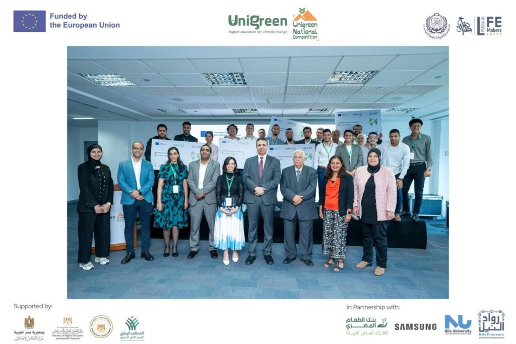تم إطلاق مسابقة “يونى جرين” الوطنية، الممولة من الاتحاد الأوروبي، والتي تُقام بقيادة مؤسسة صناع الحياة والأكاديمية العربية للعلوم والتكنولوجيا والنقل البحري وبتنفيذ من رواد النيل بالشراكة مع سامسونج وجامعة النيل الأهلية وبنك الطعام المصري بجانب شراكات حكومية أخرى.