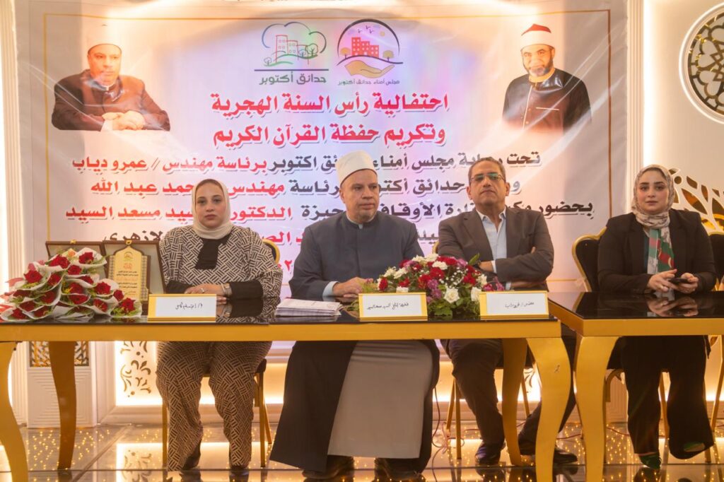وقال د.احمد سامى عضو مجلس الامناء ورئيس لجنة السكان والمرافق بالمجلس ،انه من الطبيعى تكريم حفظة القران فى احتفالية بمناسبة بداية العام الهجري،وتم اختيار الاولاد الذى تم تكريمهم على مستوى كامل المدينة بجميع احيائها ، بعناية وشفافية ، وسنستمر قى ذلك المنهج تحت رعاية المهندس عمرو دياب والمجلس .