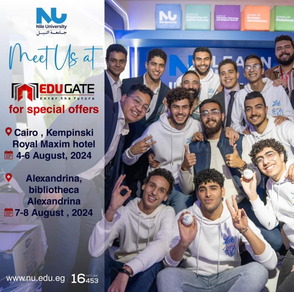 تشارك جامعة النيل، برئاسة الدكتور وائل عقل، في فاعليات النسخة الـ15 من معرض ومنتدى EDUGATE التعليمي الدولي السنوي، والذي تقام فعالياته خلال الفترة من 4 إلى 6 أغسطس الجاري بفندق كمبينسكي رويال مكسيم بالقاهرة الجديدة.