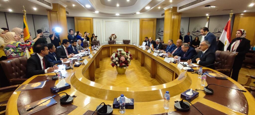 رحب أحمد الوكيل رئيس اتحاد الغرف المصرية والافريقية والأورو-متوسطية بوزير خارجية جمهورية سرى لانكا على صبرى و أيمن العشرى، رئيس غرفة القاهرة و السفير أحمد شاهين، مساعد وزير الخارجية للشئون الأسيوية