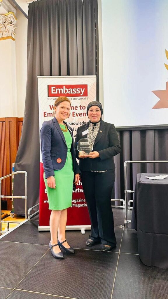 وتم تقديم الجائزة المرموقة خلال مؤتمر السفارة التعليمي ، الذي عقد مؤخرا بمقر كينجز كوليدج بلندن، وبحضور بريدجيت فيليبسون وزيرة التعليم وعضو البرلمان البريطاني.