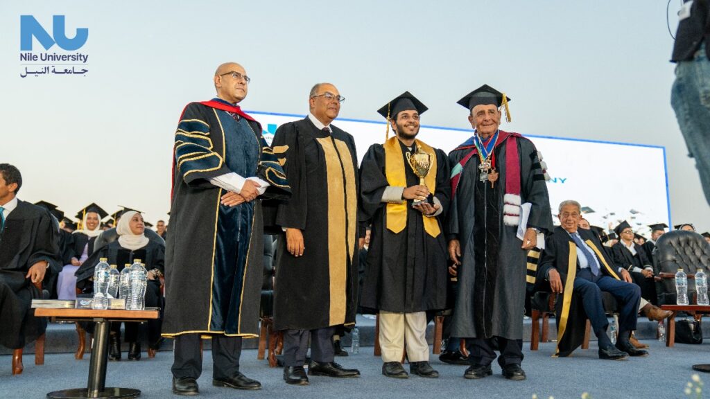 احتفلت جامعة النيل، برئاسة الدكتور وائل عقل، بتخريج الدفعة الرابعة من طلبة الدكتوراه، والدفعة الخامسة عشر من طلبة الماجستير، والدفعة الثانية عشر من طلبة البكالوريوس، في حضور رئيس مجلس أمناء الجامعة الدكتور محمود محيي الدين وأعضاء المجلس الكرام، مع أعضاء مجلس الجامعة، وعمداء الكليات، ورؤساء ومديري المراكز البحثية، وأسر الطلاب وضيوف الجامعة من قيادات العملية التعليمية ورؤساء المؤسسات المؤمنين بأهمية العلم والتعليم في نهضة الأمم، وضيف شرف حفل التخرج ” نجاتي ” وهو المهندس محمد أبو النجا، المستثمر في مجال التكنولوجيا والذكاء الاصطناعي وريادة الأعمال.