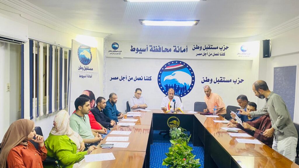 اجتمعت أمانة تنمية الموارد و الخدمه المجتمعيه بحزب مستقبل وطن باسيوط برئاسة هاني سلطان وحضور محمد جمال أمين مساعد التنظيم بالمحافظه والامناء المساعدين وأعضاء هيئة المكتب حيث ناقش الإجتماع الدوري اهم التكليفات الوارده من أمانة المحافظه والأمانة المركزيه والتي سيتم تنفيذها خلال الفترة المقبلة وكذالك تكليفات المهندس ياسر عمر أمين حزب مستقبل وطن باسيوط بضرورة عقد الاجتماعات الدوريه والمشاركة المجتمعيه في جميع المناسبات الوطنيه والاجتماعيه