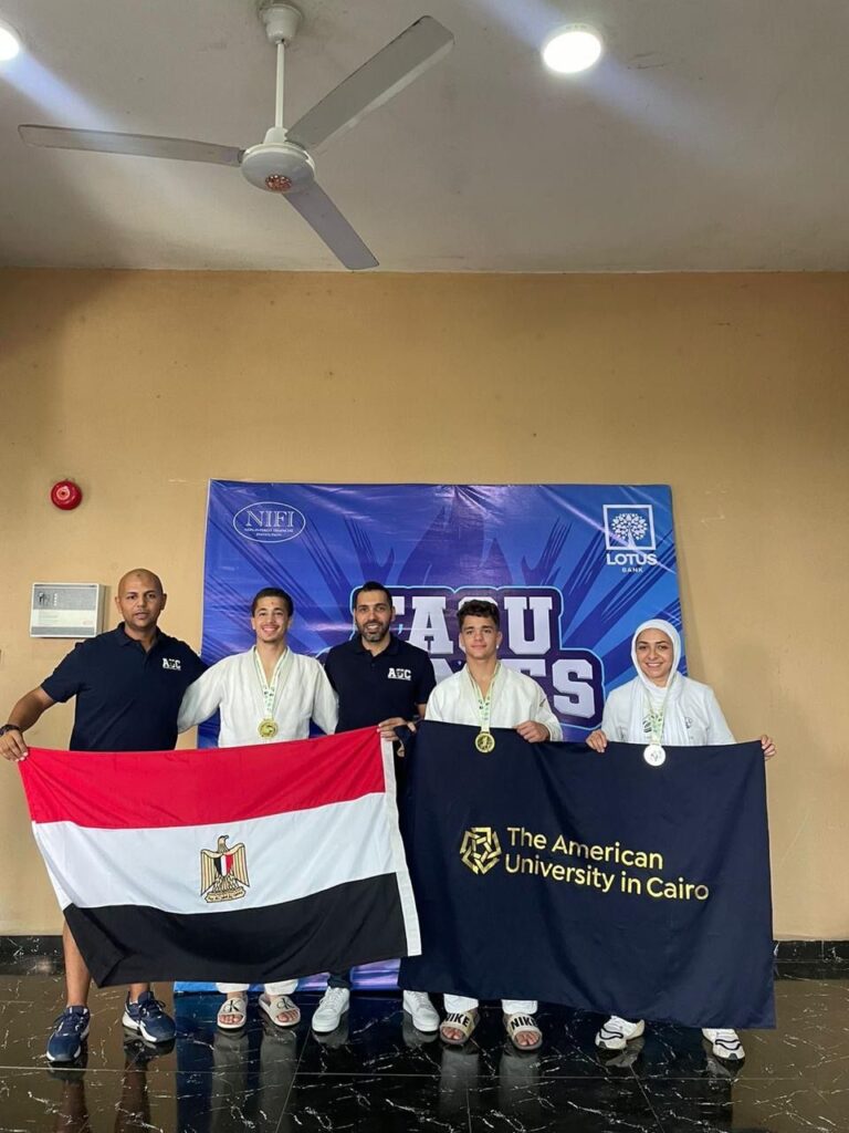 احتل طلاب الجامعة الأمريكية بالقاهرة المركز الأول باكتساح في دورة الألعاب الجامعية الأفريقية التي أقيمت الأسبوع الماضي في لاجوس، نيجيريا، حيث تنافسوا مع 70 جامعة من 35 دولة أفريقية في دورة 2024 وحققوا نتائج مذهلة حيث حصدوا 81 ميدالية، منهم 46 ميدالية ذهبية و27 فضية و 8 برونزية متقدمين على الجامعتين المنظمتين للبطولة وهما جامعة ولاية لاجوس وجامعة لاجوس اللتين احتلتا المركزين الثاني والثالث على التوالي، وكذلك على جامعة غانا و جامعة الدراسات التنموية المحتلين المركزين الرابع والخامس. يقول شريف عريان، مدير النشاط الرياضي بالجامعة، “نحن فخورون للغاية بطلابنا لإنجازهم المتميز في دورة الألعاب الجامعية الأفريقية الحادية عشرة هذا العام. فهذا هو فوزنا الثاني بعد حصولنا قبل عاميين على المركز الأول في الدورة العاشرة التي أقيمت في كينيا وهو أمر يسلط الضوء على العمل الجاد والتفاني والروح المعنوية العالية للطلاب. فهذا الإنجاز ليس احتفالاً بالتميز الرياضي فحسب، بل أيضاً بالمجتمع النابض بالحياة في الجامعة الأمريكية بالقاهرة والذي يدعم رياضيينا في كل خطوة على الطريق.”