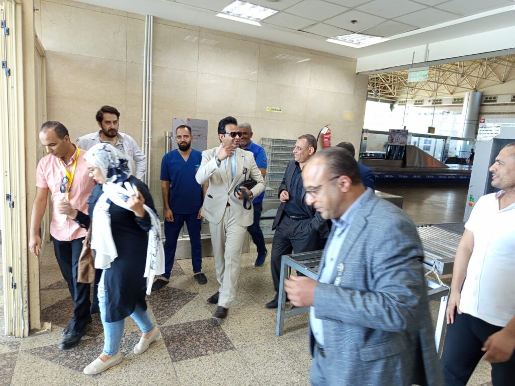 حيث تفقد ” دويدار ” غرف الحجر الصحي التي تقدم خدماتها للمسافرين . وكذلك تتبع الإجراءات الصحية ومسار المسافرين للإطمئنان إلي تطبيق الإجراءات الوقائية والإحترازية الصحيحة .