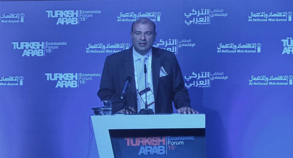 اكد امين عام اتحاد الغرف العربية، الدكتور خالد حنفي، خلال مشاركته في فعاليات المنتدى التركي العربي 2024، الذي استضافته مدينة اسطنبول/ تركيا، بمشاركة امين عام جامعة الدول العربية الدكتور أحمد ابو الغيط، رئيس اتحاد الغرف والبورصات التركية رفعت أوغلو، وزير المالية التركي محمد شيمشك، وعدد من وزراء المالية العرب وهم: وزيرة المالية في دولة الكويت نورة سليمان سالم الفسام، وزير المالية العراقي طائف سامي محمد، وزير المالية في سلطنة عمان سلطان بن سالم بن سعيد الحبسي، وزير المالية المصري محمد كوشوك، وزير المالية الليبي خالد المبروك، بإلإضافة الى شخصيات رسمية واقتصادية بارزة من الجانبين العربي والتركي، أن تركيا التي يصل حجم اقتصادها إلى حوالي تريليون دولار والعالم العربي الذي يتجاوز حجم اقتصاد 3 تريليون دولار، في حين معدلات النمو فيهما كانت جيدة بالمقارنة مع الأحداث العالمية المتسارعة، ليسا مجرد مشاركين في الاتجاهات الاقتصادية العالمية، بل إنهما يعملان بفاعلية على تشكيل ملامح أسواق الغد، حيث أن منطقتنا تتطور، وموضوع هذا المنتدى هو في حد ذاته “ممر عالمي للاستثمار والتجارة والتكنولوجيا” يعكس المرحلة التحوليّة التي نخوضها معاً.