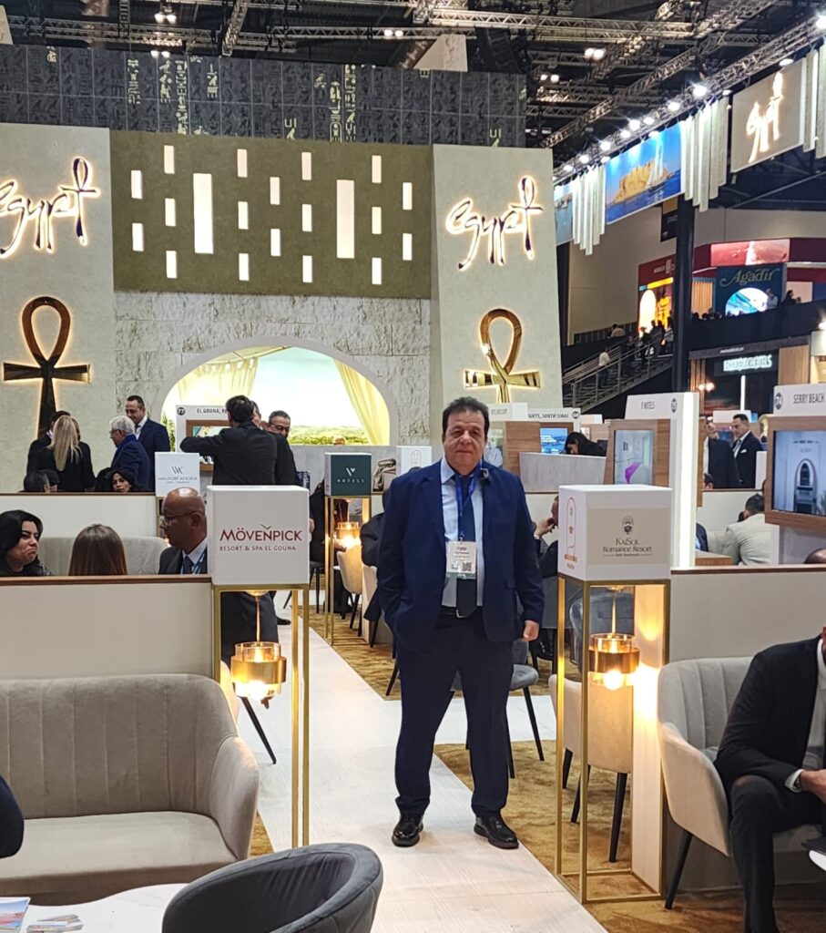 كشف الدكتور عاطف عبد اللطيف رئيس جمعية مسافرون للسياحة و السفر عضو جمعيتي مستثمري مرسى علم وجنوب سيناء عن تفاصيل الجناح المصري في بورصة لندن الدولية للسياحة WTM انطلقت فعالياتها اليوم وتستمر حتى 7 نوفمبر بحضور شريف فتحي وزير السياحة و الاثار وهيئة تنشيط السياحة ووفد من رجال الاعمال و المستثمرين السياحيين المصريين