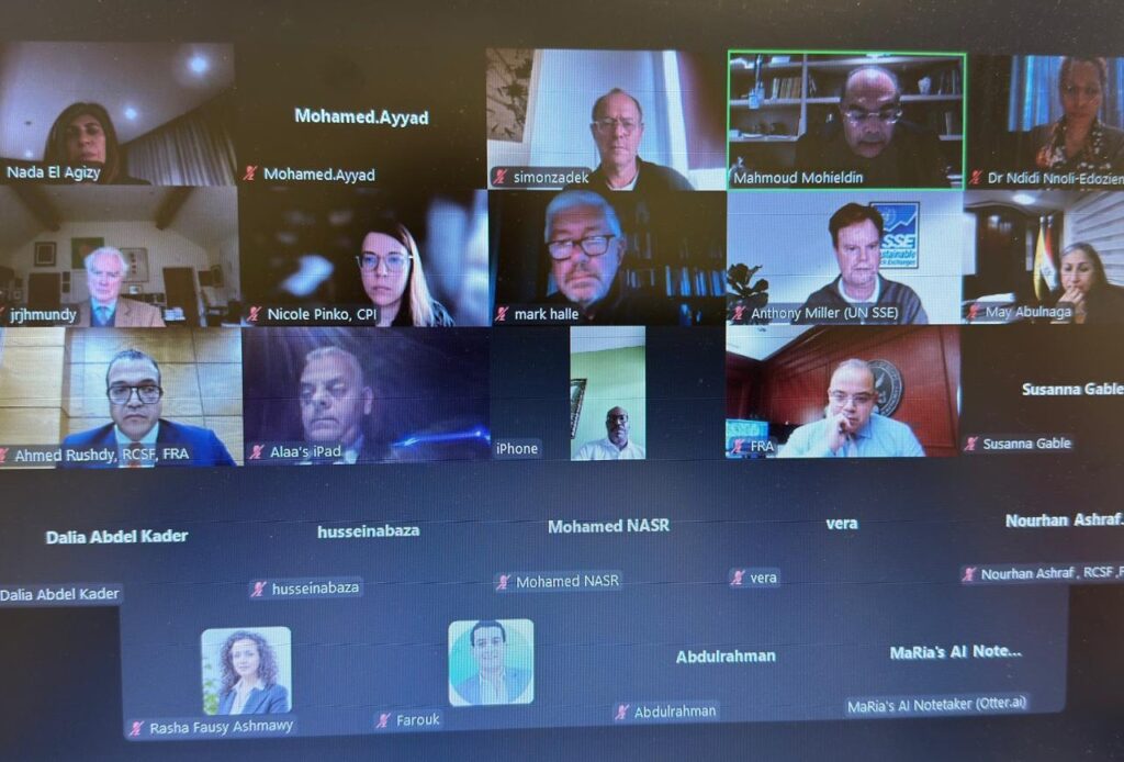 شارك الدكتور محمد فريد، رئيس الهيئة العامة للرقابة المالية، رئيس مجلس إدارة معهد الخدمات المالية، الذراع التدريبي للهيئة، في اجتماع افتراضي هو الأول للمجلس الاستشاري للمركز الإقليمي للتمويل المُستدام (RCSF) بعد إعادة تشكيله، حيث ترأس الدكتور محمود محي الدين المبعوث الخاص للأمم المتحدة لأجندة التمويل 2030، المجلس الاستشاري، لمناقشة أولويات رؤية ومستهدفات المركز الاستراتيجية لتوفير بيئة مواتية تسرع وتدعم جهود التحول نحو الاقتصاد الأخضر الأقل من حيث الانبعاثات الكربونية فضلاً عن جهود توفير حلول تمويل مبتكرة لأعمال المناخ لتحقيق التنمية المستدامة.