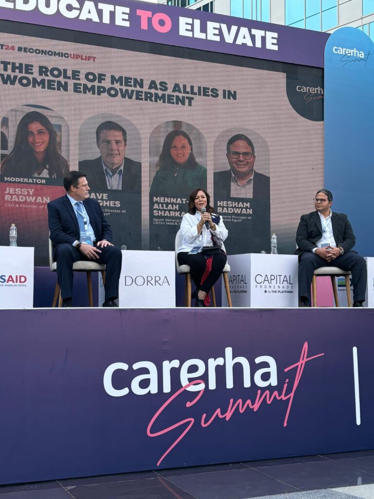 وجاء ذلك خلال حلقة نقاشية بمؤتمر “كاريرها” تحمل عنوان “دور الرجال كحلفاء في تمكين المرأة”. شارك بها منة الله شركس مدير عام شركة ليبتون مصر، ديف هيوز، المدير العام لشركة لوريال مصر، وهشام رضوان، المدير العام لشركة دانون مصر، وتناولت الجلسة الدور الحاسم الذي يمكن أن يلعبه الرجال في تعزيز المساواة بين الجنسين ودعم المبادرات التي تهدف إلى تمكين المرأة في أماكن العمل والمجتمع بشكل عام.