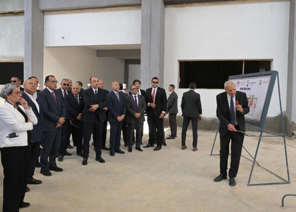 وعقب حضوره فعاليات الاحتفالية، قام رئيس الوزراء بجولة فى أرجاء مصنع الأتوبيسات، لتفقد ما تم من أعمال تطوير، كما تابع المراحل والعمليات الإنتاجية المختلفة وصولا إلى المنتج النهائي، مستمعاً إلى شرح تفصيلي حول مراحل الانتاج، وما يتم على المنتج من عمليات لاختبارات الجودة والكفاءة وفقا للمعايير العالمية المطبقة فى هذا الشأن، وذلك خلال مراحل التصنيع المختلفة، وتمت الإشارة إلى أن الطاقة الإنتاجية الحالية للمصنع تصل إلى 300 أتوبيس سنويا، ومن المستهدف أن تصل إلى 1500 أتوبيس سنويا بحلول عام 2027، وذلك بنسبة مكون محلي تصل إلى 50% في مرحلتها الأولى على أن تصل لاحقا إلى 60-70%، وتمت الاشارة خلال الشرح، إلى انه يتم التصدير إلى عدد من الدول العربية.