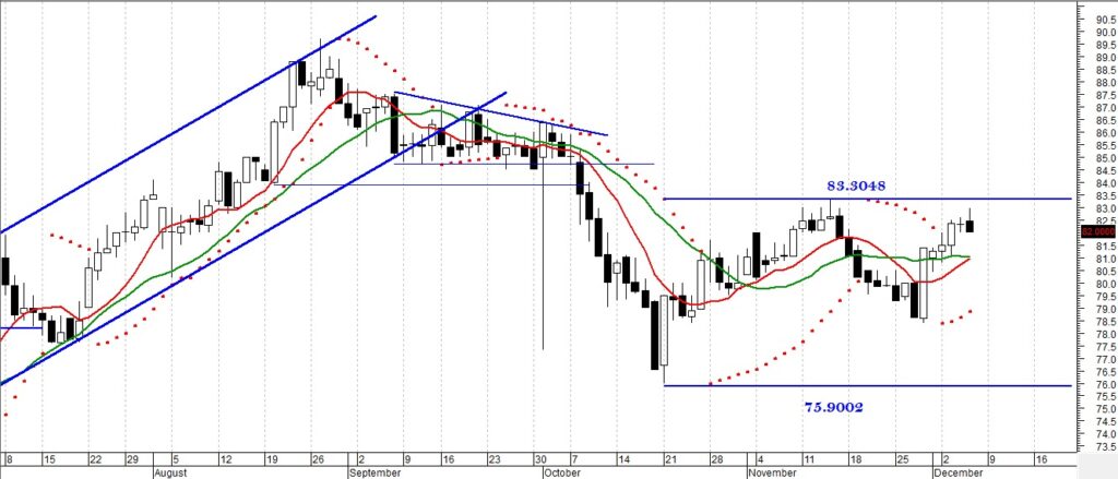 واصبحت مستويات الدعم الرئيسيه حول 75.90–76.00 هي الحد السفلي لهذا الاتجاه العرضي واصبحت مستويات 83.50 هي الحد العلوي للاتجاه العرضي ومستوي المقاومه والمستهدف الحالي للسه لذلك ننصح المستثمر قصير الاجل جدا بالمتاجره ما بين الحدود السعريه (مستويات الدعم والمقاومه الرئيسيه .