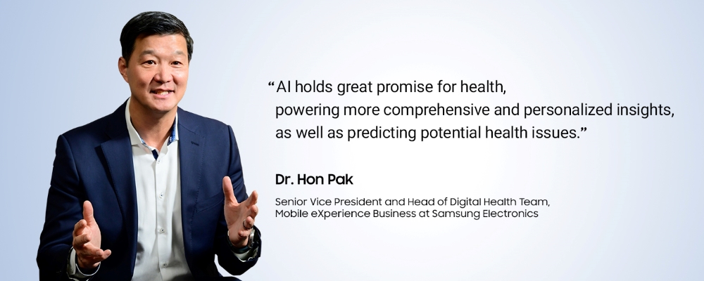 يري الدكتور هون باك، نائب الرئيس الأول ورئيس فريق الصحة الرقمية في شركة سامسونج إليكترونيكس والذي يمتلك خبرة تتجاوز 25 عامًا في المجال الطبي، أن التكنولوجيا الحديثة تمثل ركيزة أساسية لدفع عجلة التقدم في مجال الرعاية الصحية. ولهذا أشاد الدكتور باك بدور الذكاء الاصطناعي، الذي يوفر حلولاً مبتكرة لمعالجة العديد من التحديات الصحية التي تواجه المجتمع، من خلال خطوات بسيطة وغير معقدة تيسر على جميع الفئات استخدامها.