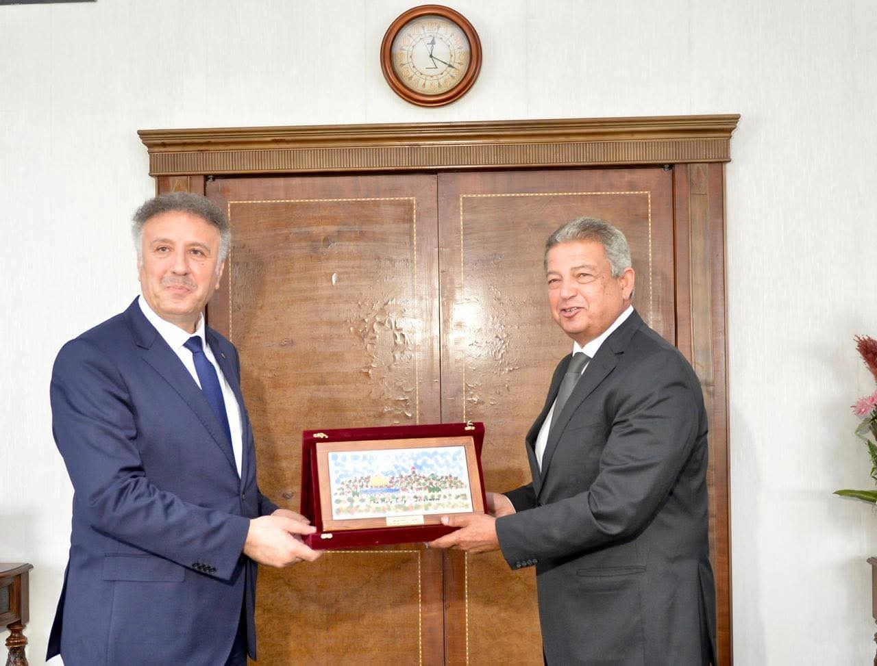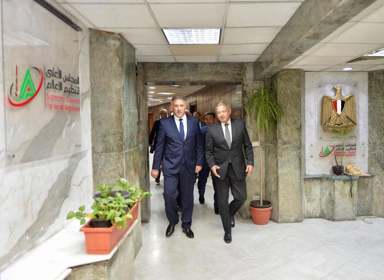 استقبل المهندس خالد عبدالعزيز، رئيس المجلس الأعلى لتنظيم الإعلام، الوزير أحمد عساف، المشرف العام على الإعلام الرسمي الفلسطيني، والوفد المرافق له، بحضور الإعلامي عصام الأمير، وكيل المجلس، وناجي الناجي، المستشار الثقافي لسفارة دولة فلسطين في القاهرة.