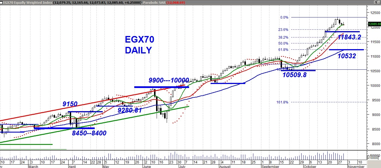 كسر مستوى 11850 والإغلاق أسفله يعتبر إشارة ضعف قصيرة الأجل تستدعي التحوط وإدارة المراكز،