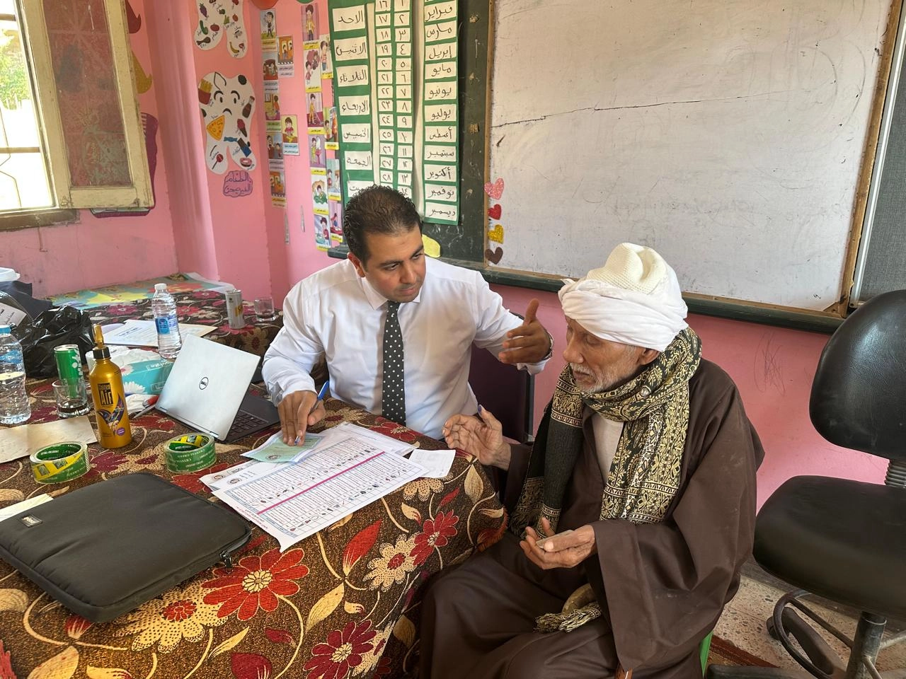 المستشار حازم جاد يساعد أحد كبار السن للإدلاء بصوته فى الاستحقاق الانتخابي