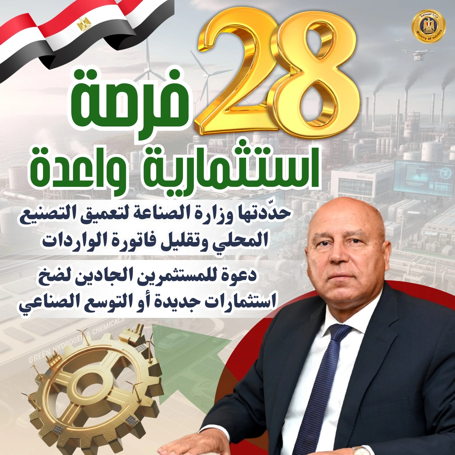 تعرف بالتفصيل على الـ28 فرصة استثمارية واعدة المحددة من وزارة الصناعة بهدف تعميق التصنيع المحلي وتلبية احتياجات السوق