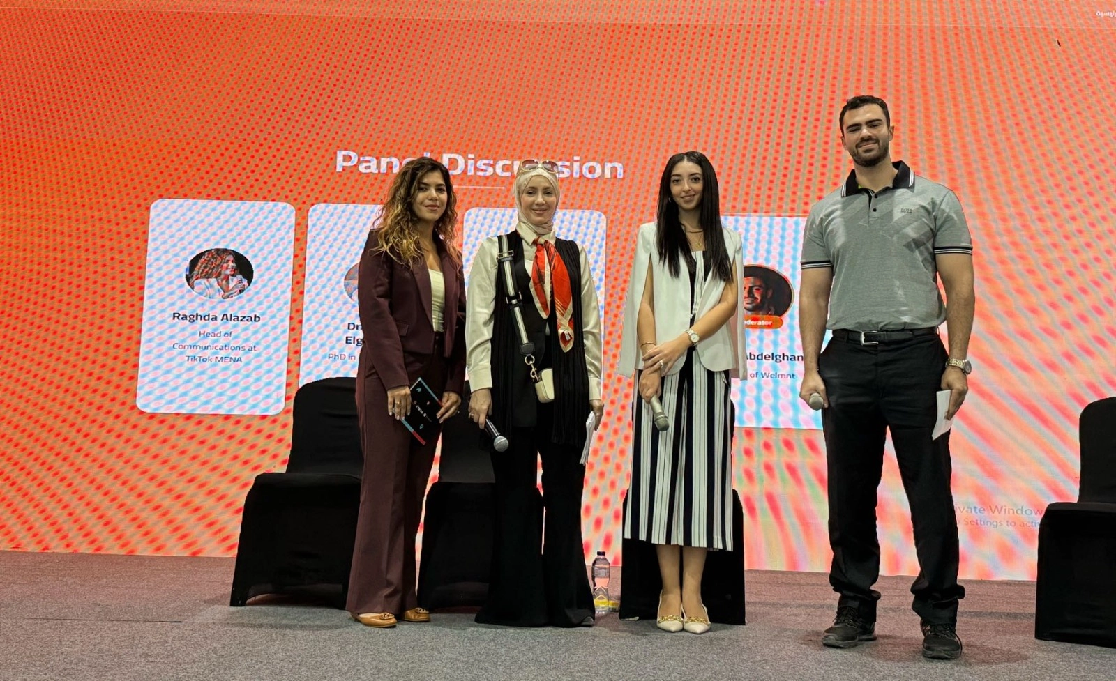 كما تتضمن الفعالية جلسة نقاشية بإدارة حازم عبد الغني، الرئيس التنفيذي لشركة Welmnt، ليلي المليجي الأخصائية النفسية من مدرسة الشويفات الدولية، ودكتورة ولاء الجمال، الحاصلة على دكتوراه في الصحة النفسية والعلاج النفسي، ورغدة العزب، مديرة العلاقات العامة في تيك توك لمنطقة الشرق الأوسط وشمال أفريقيا، لمناقشة حلول مشتركة بين المنصة والخبراء لدعم الأمان الرقمي وحماية الشباب من التنمر الإلكتروني.