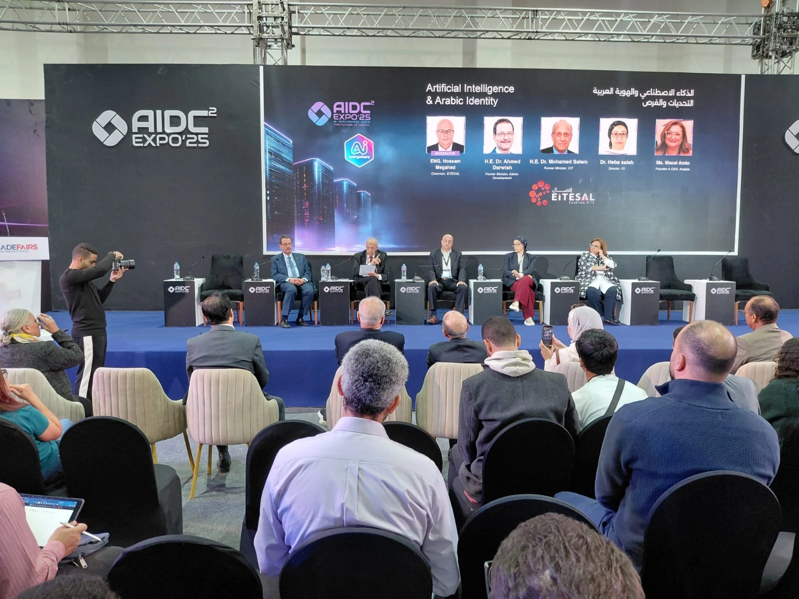 ناقشت جلسة “الذكاء الاصطناعي والهوية العربية” كيف يمكن الحفاظ على هويتنا العربية في ظل تسونامي الذكاء الاصطناعي، وذلك ضمن فاعليات مؤتمر AIDC الذي يقام بالتزامن مع معرض القاهرة الدولي للتكنولوجيا للشرق الأوسط وأفريقيا CAIRO ICT الذي يُعقد حالياً في نسخته 29 بمركز مصر للمعارض الدولية تحت شعار “AI Everywhere”.