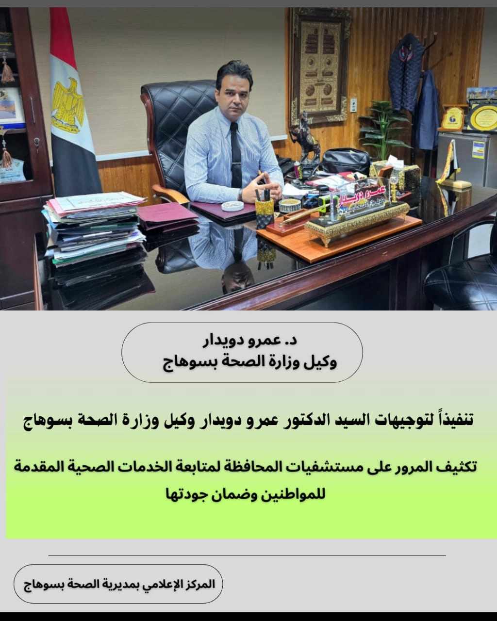 في إطار حرص مديرية الصحة بسوهاج على الارتقاء بمستوى الخدمة الطبية وتحقيق الانضباط داخل المنشآت الصحية، كثفت فرق الطب العلاجي والصيدلة والحوكمة جولاتها الميدانية على مستشفيات المحافظة، تنفيذاً لتوجيهات الدكتور عمرو دويدار بضرورة المتابعة المستمرة والوقوف على جودة الخدمات المقدمة للمواطنين، والتأكد من توافر الأدوية والمستلزمات الطبية.