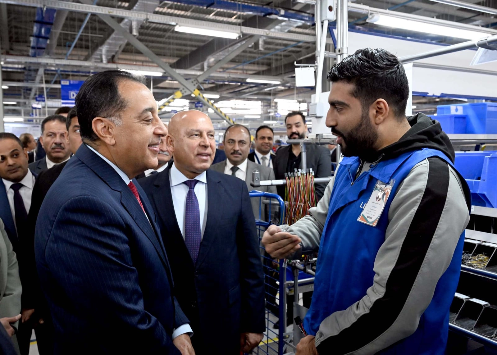 أجرى اليوم الدكتور مصطفى مدبولي، رئيس مجلس الوزراء، حديثاً ودياً مع العاملين خلال افتتاح مصنع “ليوني مصر” العالمية لضفائر السيارات بمدينة بدر، وذلك اتصالاً بالحرص على الاستماع إلى العاملين للتعرف على أوضاعهم وظروف بيئة العمل.