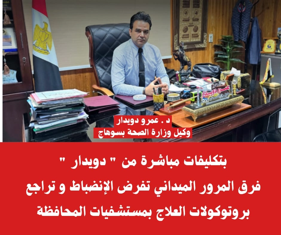 وأوضح “دويدار “أن المتابعة الميدانية مستمرة على مدار الساعة من خلال فرق المرور المنتشرة بمختلف مستشفيات المحافظة منذ أيام بصورة متواصلة، وهو ما انعكس بشكل إيجابي وملموس على مستوى الخدمات الصحية.