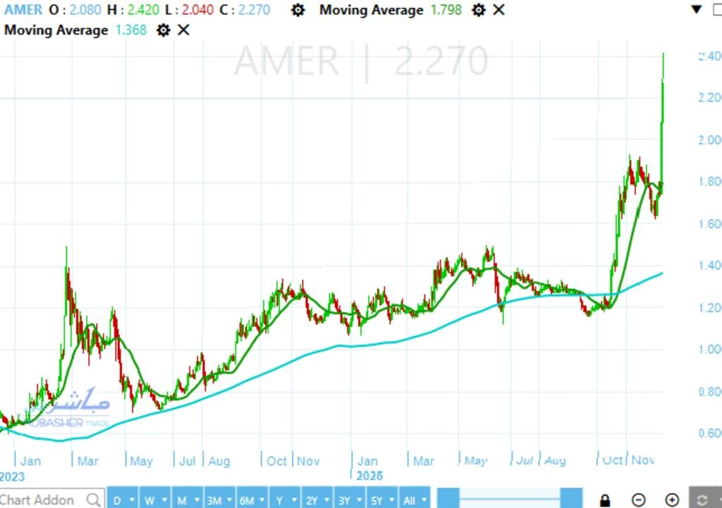 وبدأ سهم شركة عامر جروب عام 2025 بداية إيجابية في الربع الأول من العام حيث بدء السهم تداولاته عند1.15 جنية وارتفع إلى مستوى 1.50 جنيه.