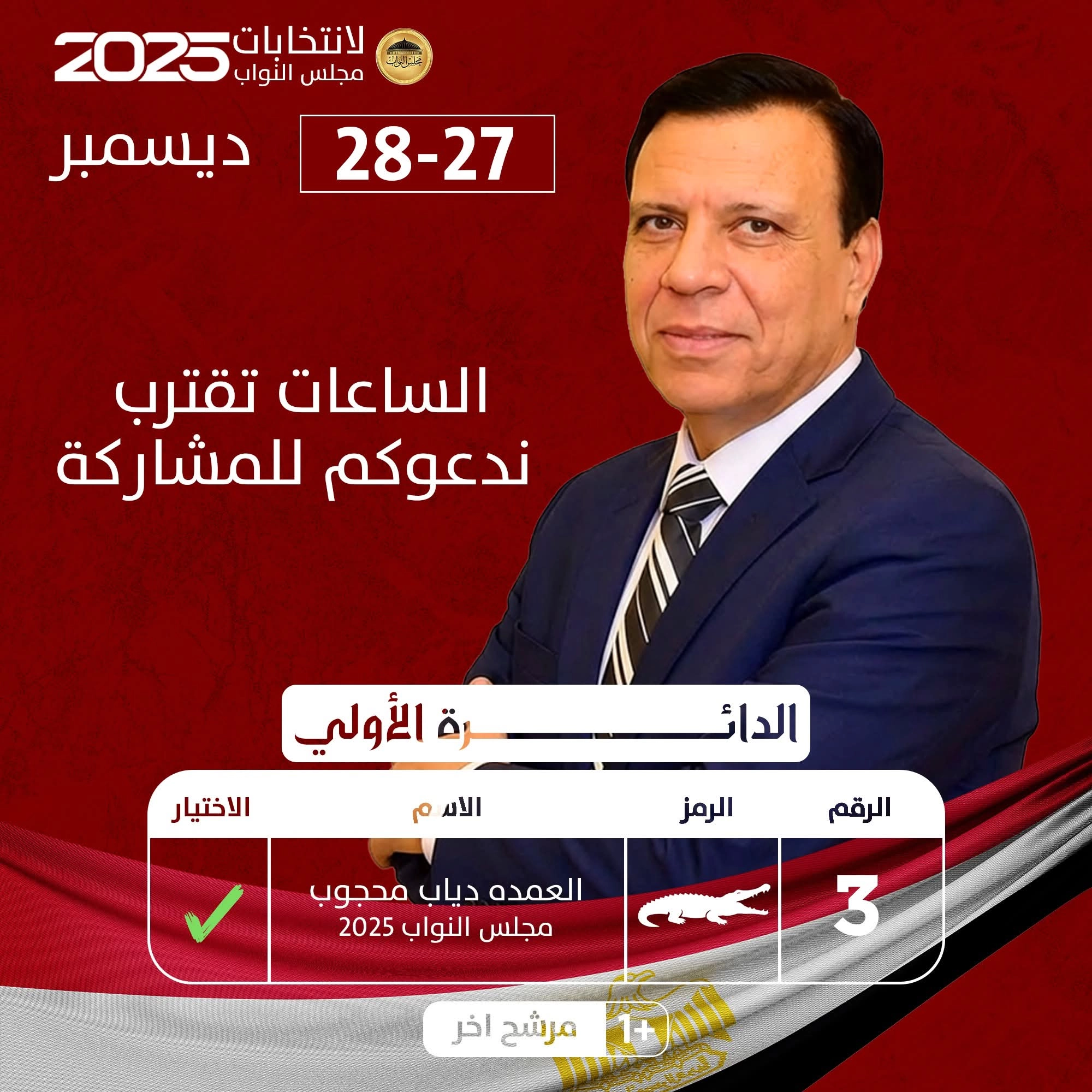 في إعلان رسمي اليوم، تمكن النائب العمدة دياب محجوب من الفوز بمقعده في مجلس النواب لعام 2025، بعد جولة انتخابية شهدت منافسة قوية واهتمامًا كبيرًا من الناخبين.
