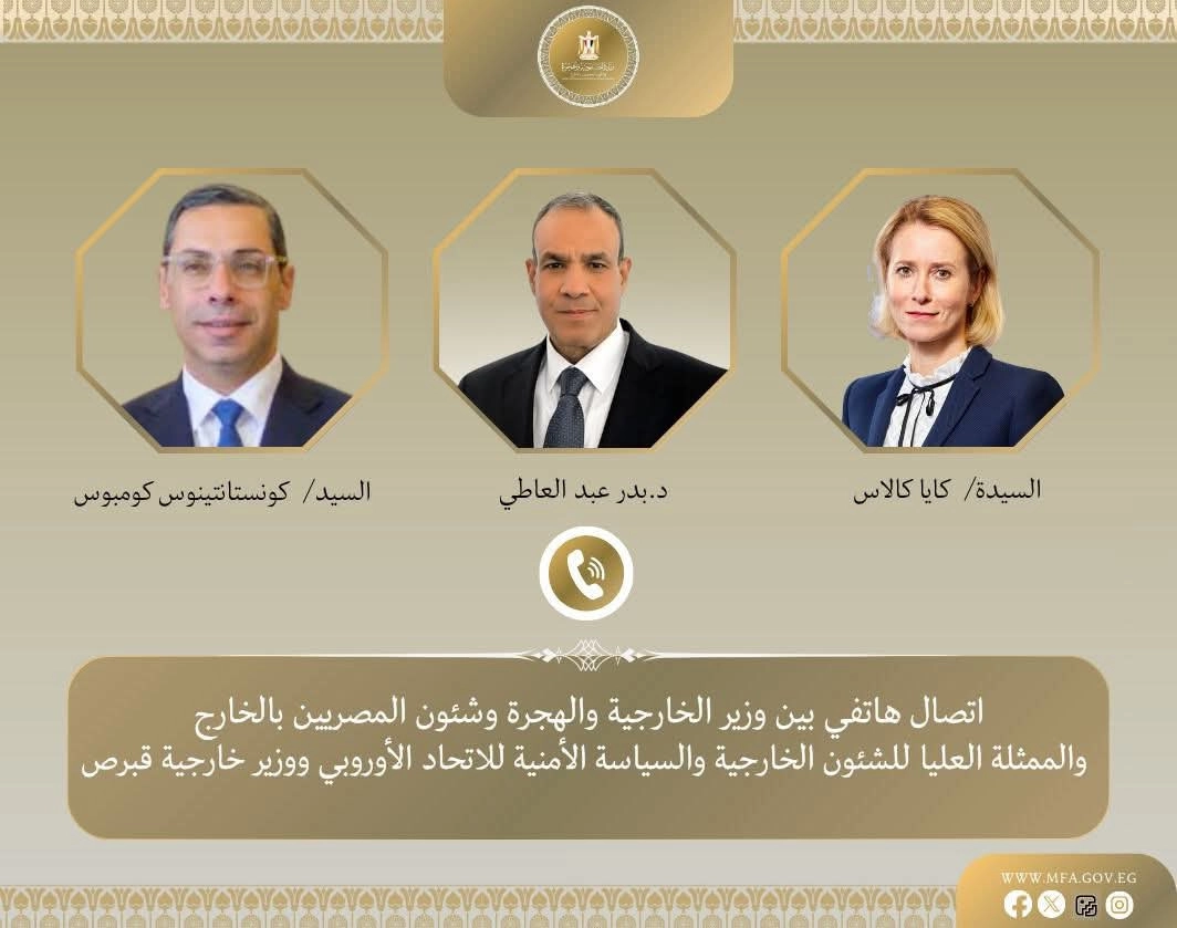 تلقى د. بدر عبد العاطي وزير الخارجية والهجرة وشئون المصريين بالخارج اتصالًا هاتفيا من السيدة “كايا كالاس” الممثلة العليا للشئون الخارجية والسياسة الأمنية للاتحاد الأوروبي، والسيد “كونستانتينوس كومبوس” وزير خارجية قبرص مساء يوم الخميس ١٥ يناير، في إطار التشاور المستمر لبحث الشراكة الثنائية بين مصر والاتحاد الأوروبي، ولتبادل الرؤى إزاء التطورات الإقليمية ذات الاهتمام المشترك.