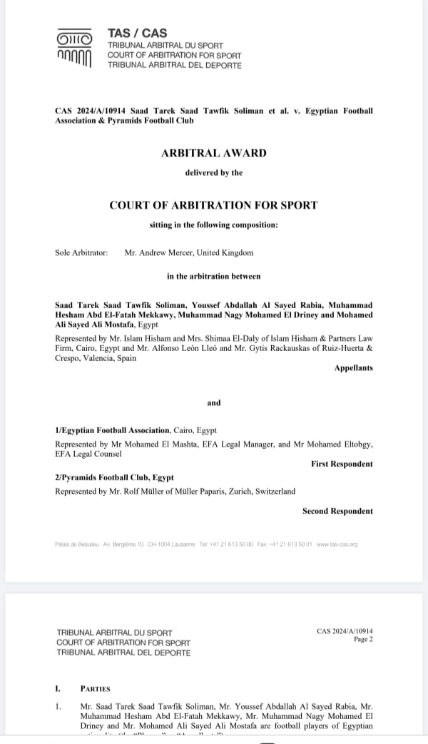 أسدلت المحكمة الرياضية الدولية “كاس” الستار بشكل نهائي وقالت كلمتها الأخيرة في النزاع القضائي بين مجموعة من لاعبي فريق الناشئين مواليد 2009 ونادي بيراميدز.