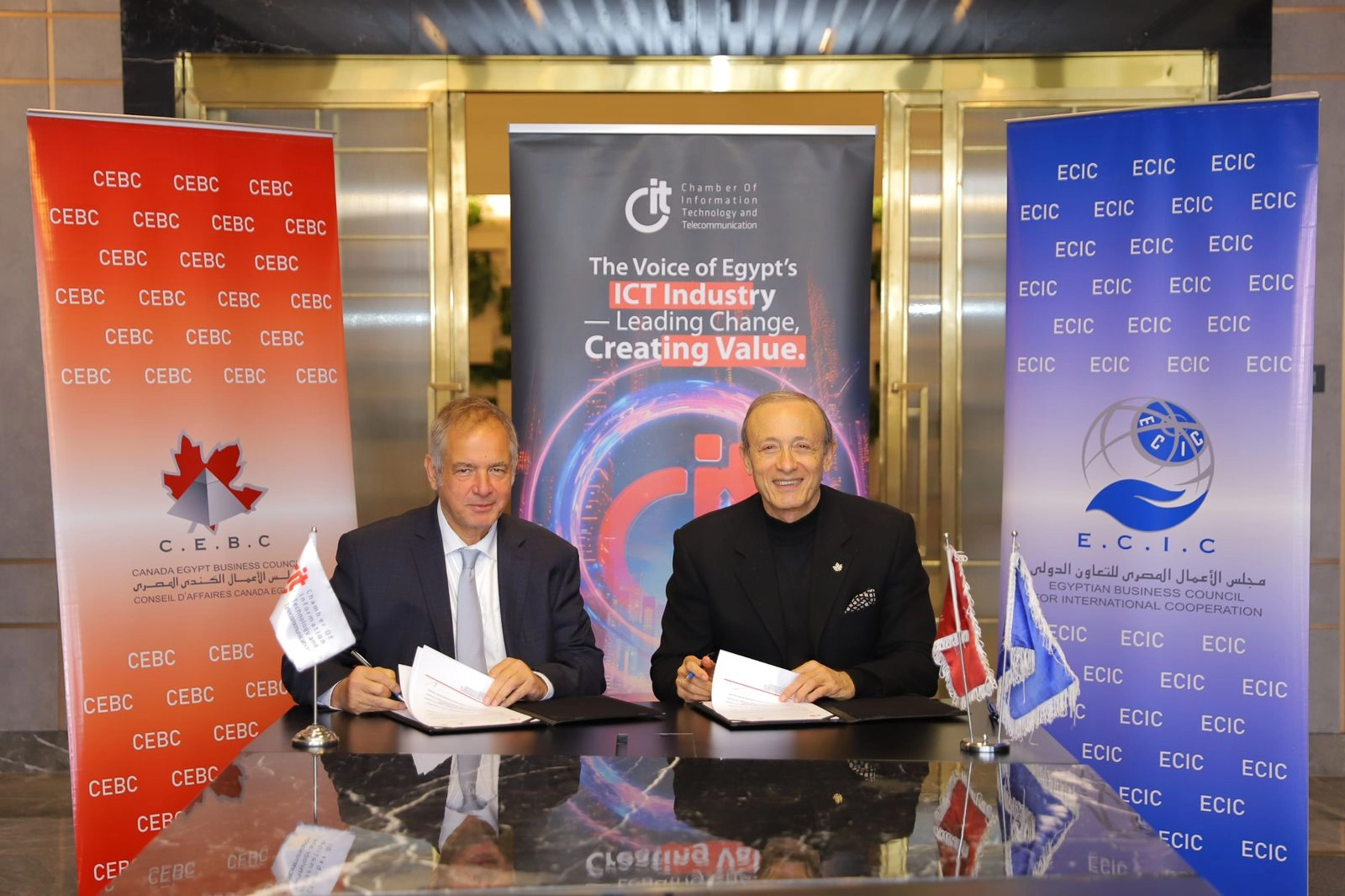 في خطوة محورية لتعزيز التجارة الدولية والتعاون التكنولوجي وقعت غرفة صناعة تكنولوجيا المعلومات والاتصالات المصرية CIT مذكرة تفاهم استراتيجية مع مجلس الأعمال الكندى المصرى ومجلس الأعمال المصرى للتعاون الدولي.