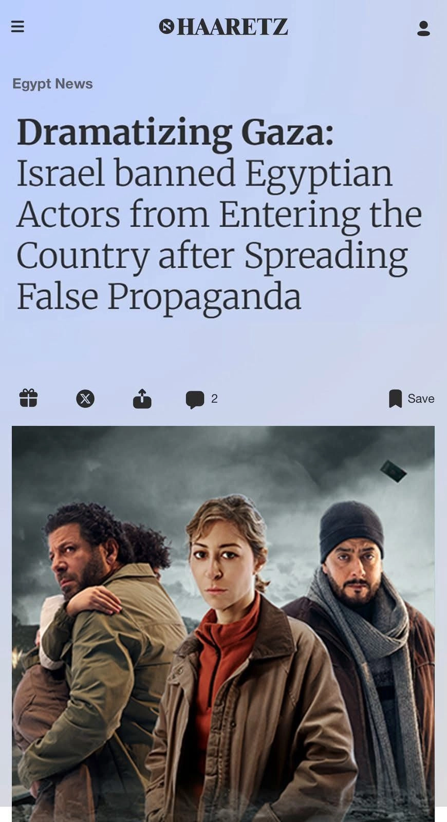 ووفقا لخبر نشر في صحيفة هاآرتس الاسرائليه كانت وترجمته كالأتي: “تجسيد درامي لغزة: إسرائيل تمنع ممثلين مصريين من دخول البلاد بعد نشر دعاية كاذبة.”، إلى جانب التهديدات التي تصل لكل صناع العمل يومياً.