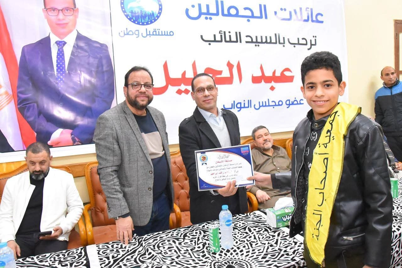 وفي ختام الحفل، وتقديرًا لجهوده المستمرة ودعمه الدائم للأنشطة المجتمعية والدينية، قامت عائلات الجمالين بتقديم درع شكر وتقدير للنائب سيد عبد الجليل، تعبيرًا عن امتنانهم لرعايته الكريمة لهذا الحدث الذي يرسخ القيم السامية في نفوس الأجيال الصاعدة.