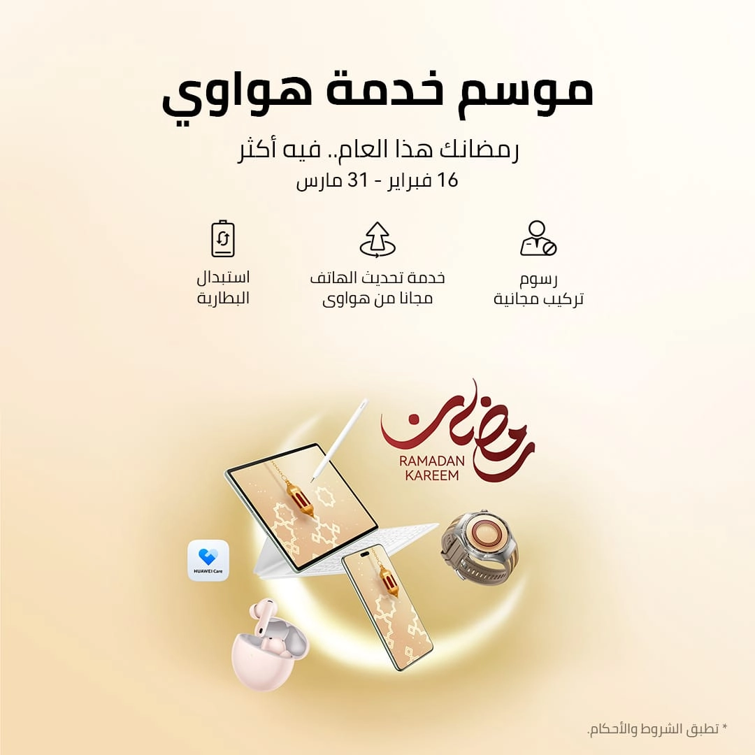 كما تعكس هذه المبادرة حرص هواوي على تسهيل حياة عملائها وتوفير تجربة استخدام أكثر سلاسة واعتمادية، خاصة خلال شهر رمضان الذي يزداد فيه الاعتماد على الأجهزة الذكية للتواصل والعمل ومتابعة المحتوى والترفيه، بما يضمن للمستخدمين أداءً موثوقًا وتجربة يومية مريحة دون انقطاع.