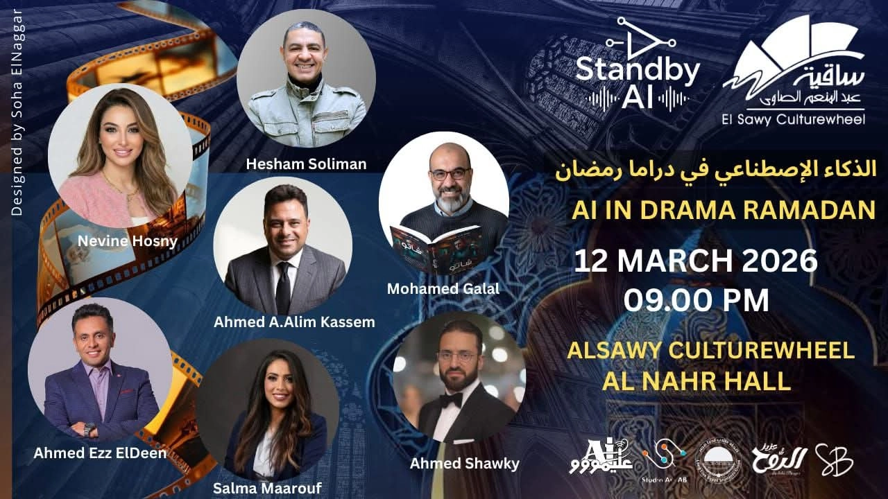 تنظم مبادرة Stand By AI بالتعاون مع اتحاد شباب تحيا مصر – محافظة الجيزة ندوة بعنوان “الذكاء الاصطناعي في دراما رمضان”، التاسعة مساءً الخميس 12 مارس 22 رمضان بقاعة النهر ساقية عبد المنعم الصاوي.