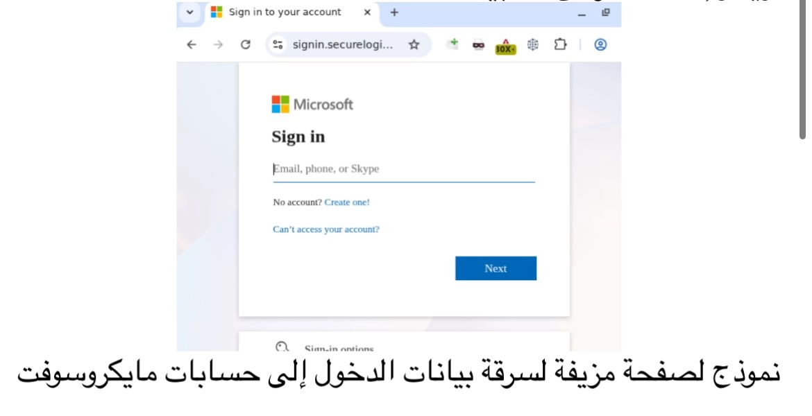 نموذج لصفحة مزيفة لسرقة بيانات الدخول إلى حسابات مايكروسوفت