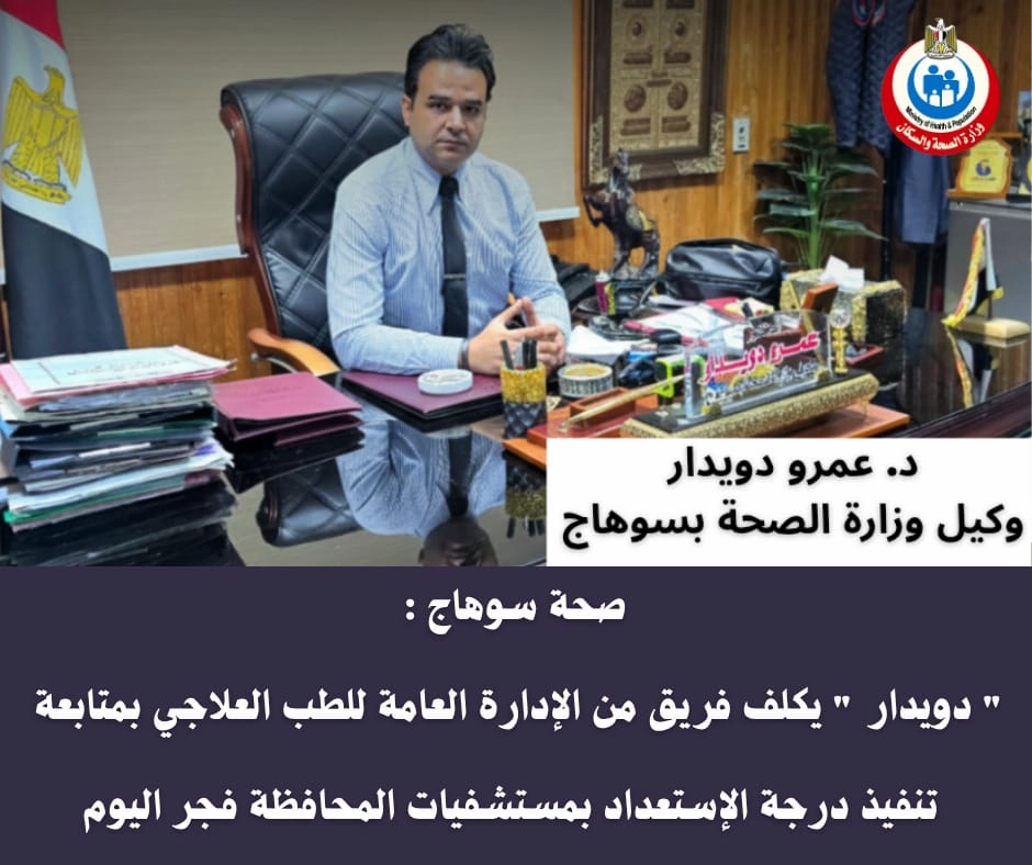 وضم الفريق كلًا من الدكتور ديفيد كمال، والأستاذ محمد جمال مشرفي الطب العلاجي، حيث قاموا بالمرور على مستشفيات ساقلتة المركزي، والمراغة المركزي، وطهطا العام، لمتابعة مستوى الجاهزية والتأكد من تنفيذ كافة التعليمات الخاصة برفع درجة الاستعداد.