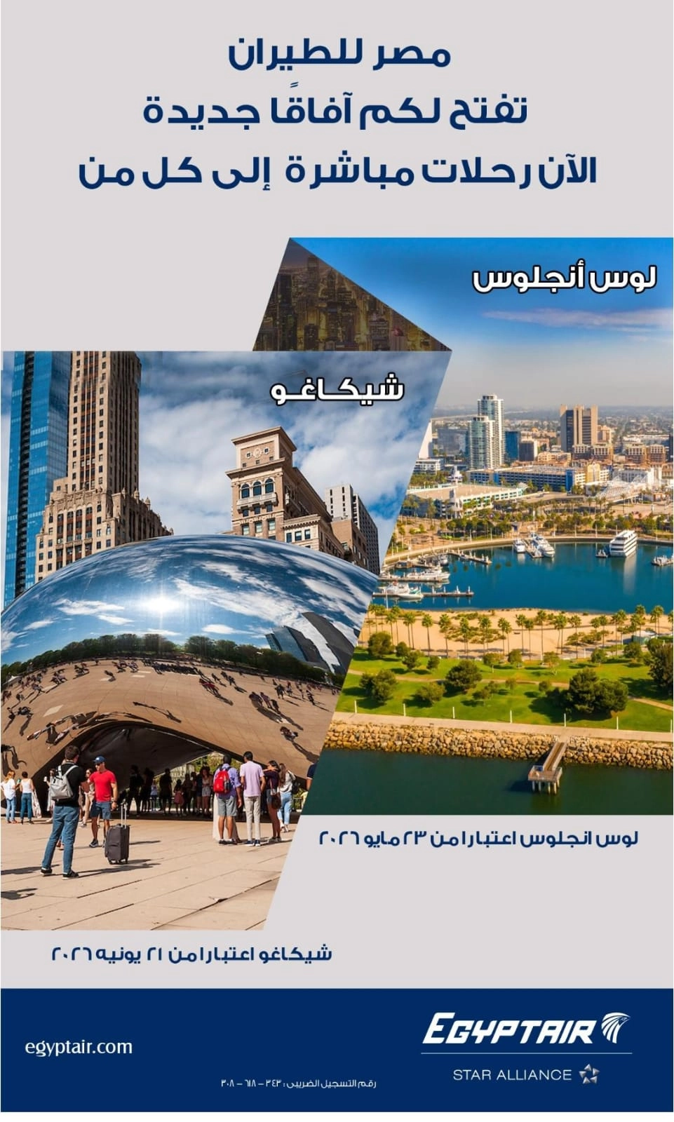 وبذلك تصبح شيكاغو ولوس أنجلوس الوجهتين الرابعة والخامسة لمصر للطيران في الولايات المتحدة الأمريكية، إلى جانب وجهاتها الحالية: نيويورك وواشنطن ونيوارك.