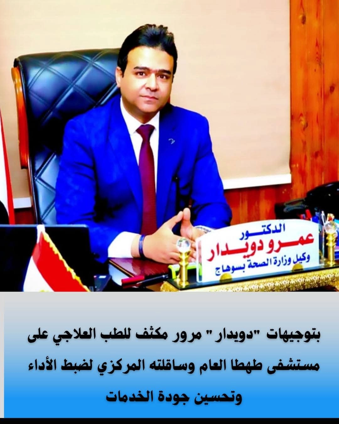 في إطار توجيهات السيد الدكتور عمرو دويدار وكيل وزارة الصحة بسوهاج، بتكثيف أعمال المتابعة الميدانية على مستشفيات المحافظة، وحرصًا على تقديم خدمات صحية متميزة للمواطنين، كثّفت فرق المرور التابعة للإدارة العامة للطب العلاجي بمديرية الصحة بسوهاج من جولاتها التفقدية اليوم على مستشفى طهطا العام ومستشفى ساقلتة المركزي.
