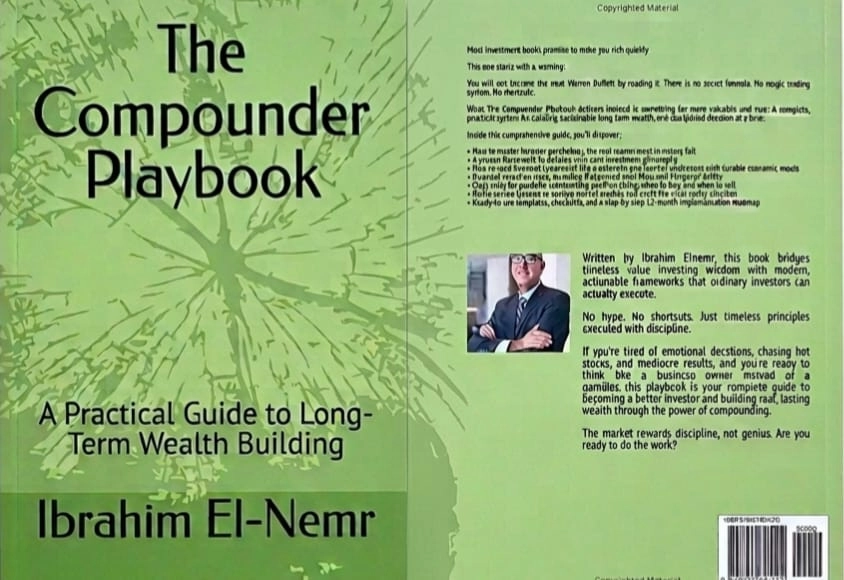 أطلق الخبير الاقتصادي “ابراهيم النمر”، كتابه الجديد The Compounder Playbook”” والذي يعد دليل عملي وشامل يهدف إلى تمكين المستثمرين الأفراد من بناء ثروات طويلة الأجل من خلال اتباع منهجية “الاستثمار في القيمة” Value Investing “، يركز الكتاب على أن الاستثمار الناجح لا يعتمد على العبقرية أو المعلومات السرية، بل على وجود *نظام منضبط وعملية متكررة* تعتمد على الانضباط النفسي والتحليل الدقيق.