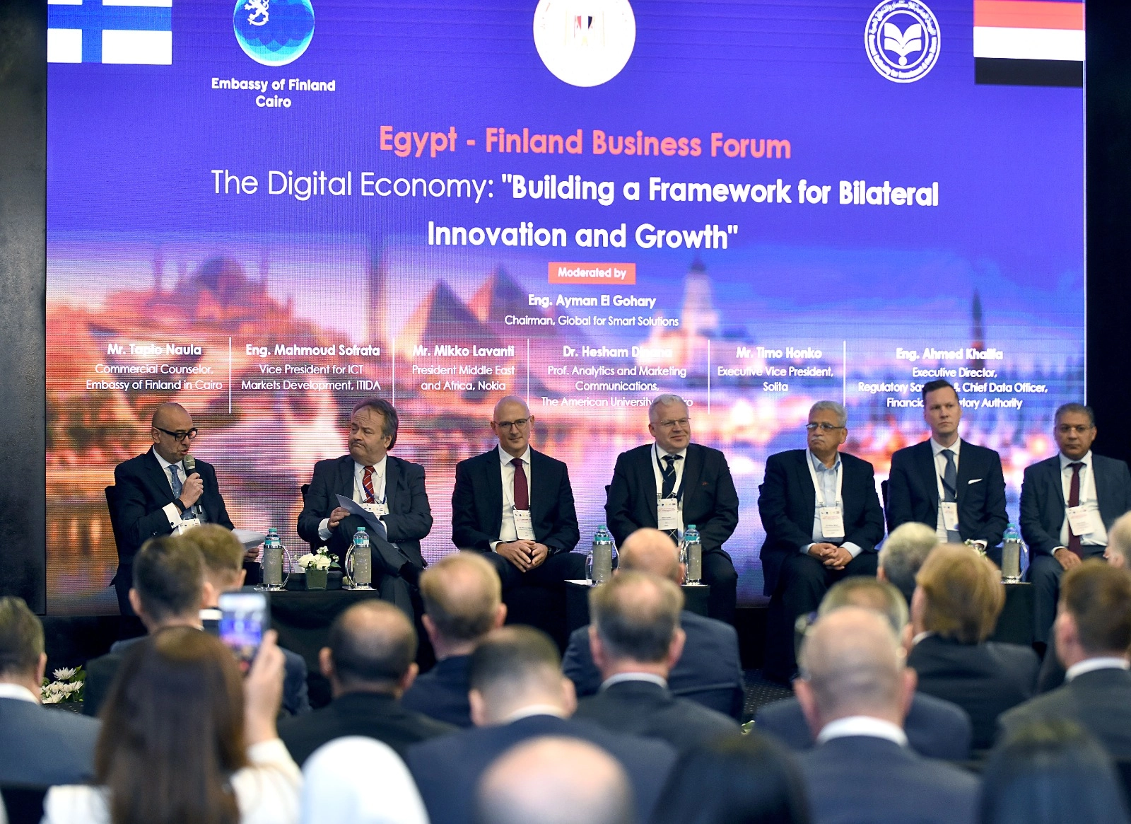 وأدار الجلسة المهندس أيمن الجوهري، رئيس شركة Global for Smart Solutions، بمشاركة نخبة من المسؤولين والخبراء، حيث أكد المهندس محمود صفرتا، نائب الرئيس التنفيذي لهيئة تنمية صناعة تكنولوجيا المعلومات (ITIDA)، أن مصر تمضي بخطى ثابتة نحو ترسيخ مكانتها كمركز إقليمي رائد في مجال تكنولوجيا المعلومات والاتصالات، مدفوعة باستراتيجية واضحة تستهدف تنمية الأسواق الرقمية وجذب الاستثمارات في قطاع التكنولوجيا. وأشار إلى أن تطوير البنية التحتية الرقمية ودعم الابتكار وتمكين الشركات الناشئة تمثل ركائز أساسية في خطة عمل الهيئة، بما يعزز من تنافسية القطاع ويدعم قدرته على التوسع إقليمياً وعالمياً، لافتاً إلى أن التعاون الدولي، لا سيما مع فنلندا، يفتح آفاقاً واسعة لنقل المعرفة وتبادل الخبرات وتسريع التحول الرقمي.