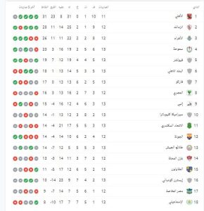 وجاء جدول ترتيب الدورى المصرى بعد انتهاء مباريات الأربعاء كالتالي: