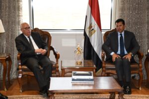 بمقر الوزارة بالعاصمة الإدارية الجديدة*.. *وزير الرياضة يتابع مع محافظ بورسعيد مستجدات سير الأعمال الجارية لإنشاء استاد بورسعيد الجديد