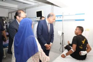 محافظ المنيا يزور مصابي حادث تصادم قطار بجرار في ماقوسة ويطمئن على حالتهم الصحية