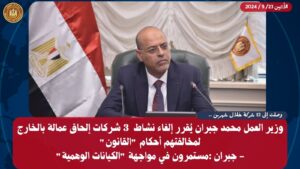 وزير العمل يُقرر إلغاء نشاط 3 شركات إلحاق عمالة بالخارج لمخالفتهم أحكام “القانون”