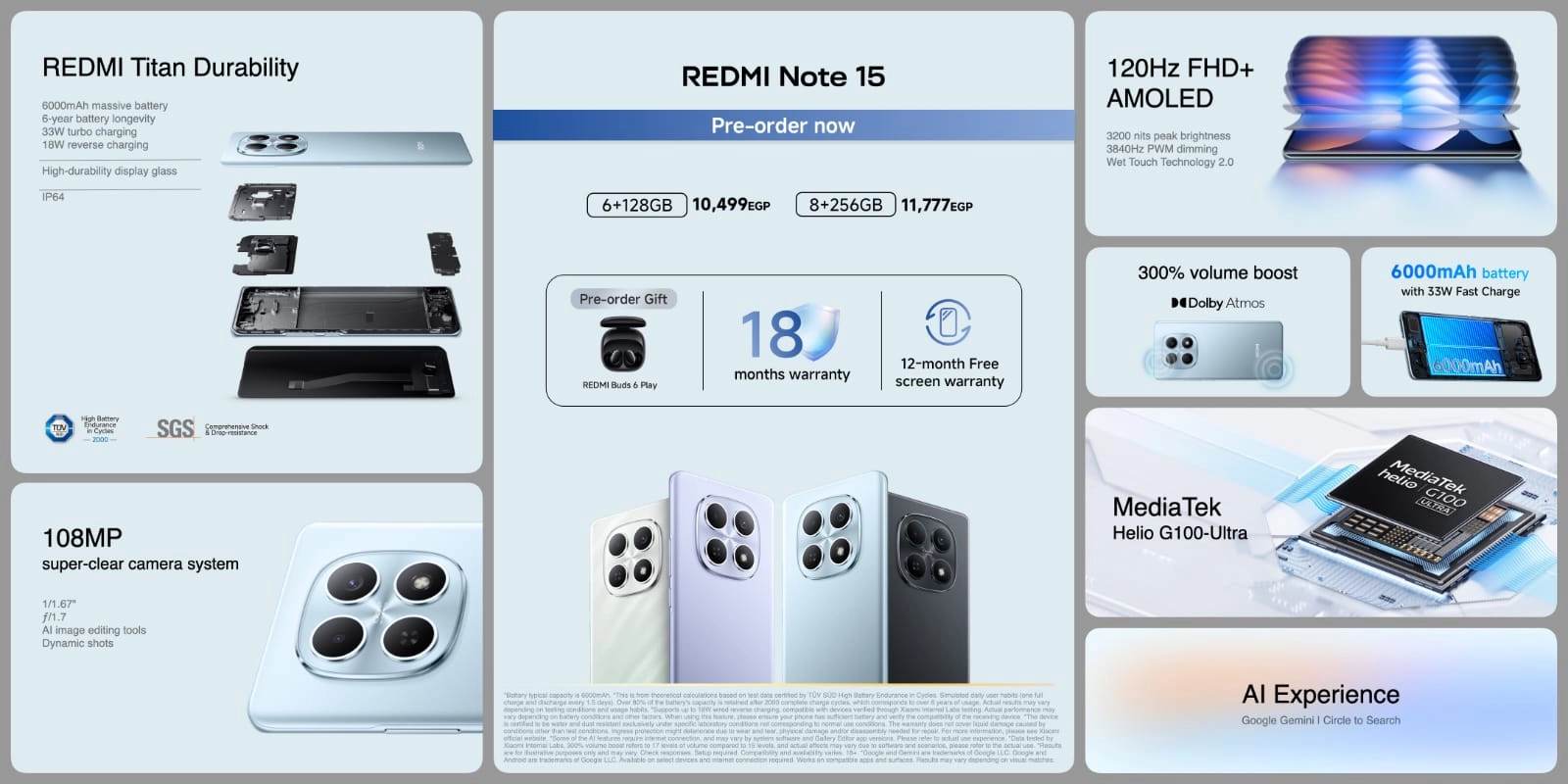 شاومي تطرح سلسلة REDMI Note 15 Series رسميًا في السوق المصرية بأداء قوي وتقنيات متقدمة وسعر منافس